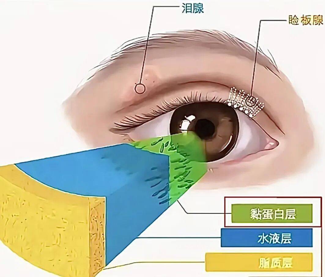 泪液有 3 层:脂质层——减少水液蒸发;水液层——保湿的;黏卵白层——让水分均匀贴附在眼睛名义。